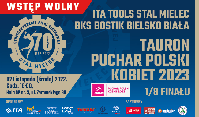 To intensywny czas dla zespołu ITA TOOLS Stal Mielec. W nadchodzącą środę, 2 listopada Biało-Niebieskie zagrają w 1/8 finału Tauron Pucharu Polski Kobiet. Zespół Stali w minionym tygodniu pokonał w II rundzie drużynę z Wieliczki 3:0. W losowaniu zespołów z TauronLigi, które od III rundy rozpoczynają zmagania w rozgrywkach pucharowcych, naszym przeciwnikiem została drużyna BKS BOSTIK Bielsko-Biała. Zapowiada się emocjonujące spotkanie w hali SP nr 3 w Mielcu. Pierwszy gwizdek punktualnie o godzinie 18:00. Zapraszamy!