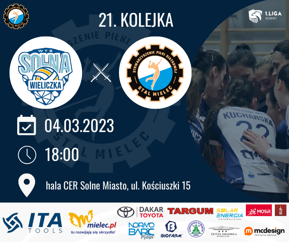 W nadchodzącą sobotę, 4 marca, Biało-Niebieskie zagrają mecz w ramach 21. kolejki 1. Ligi Kobiet z drużyna UJ-CM Solna Wieliczka. To kolejne spotkanie rundy wiosennej, które zespół ITA TOOLS Stal Mielec, zagra na wyjeździe. Mecz rozpocznie się o godzinie 18:00, w hali CER Solne Miasto przy ul. Kościuszki 15.