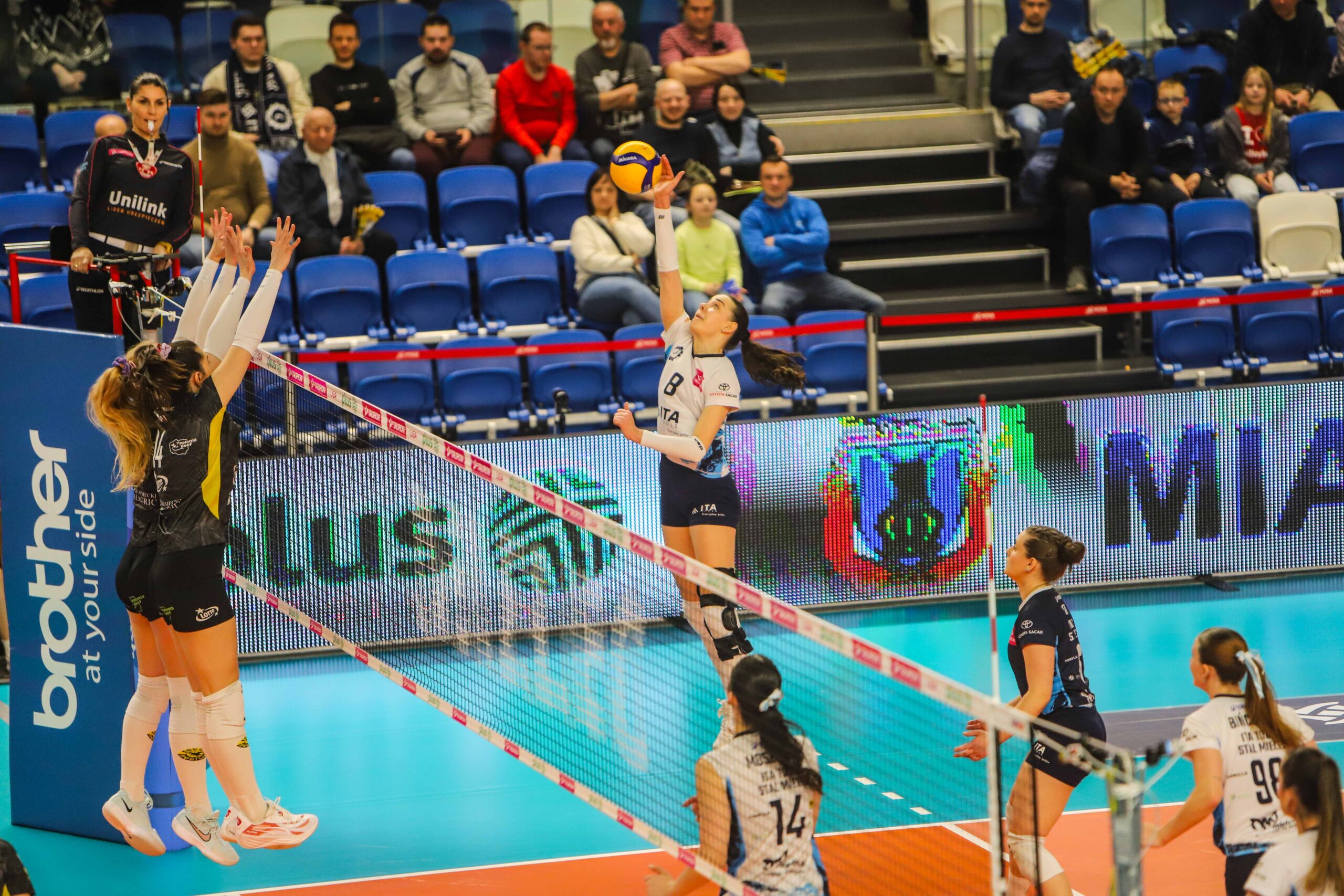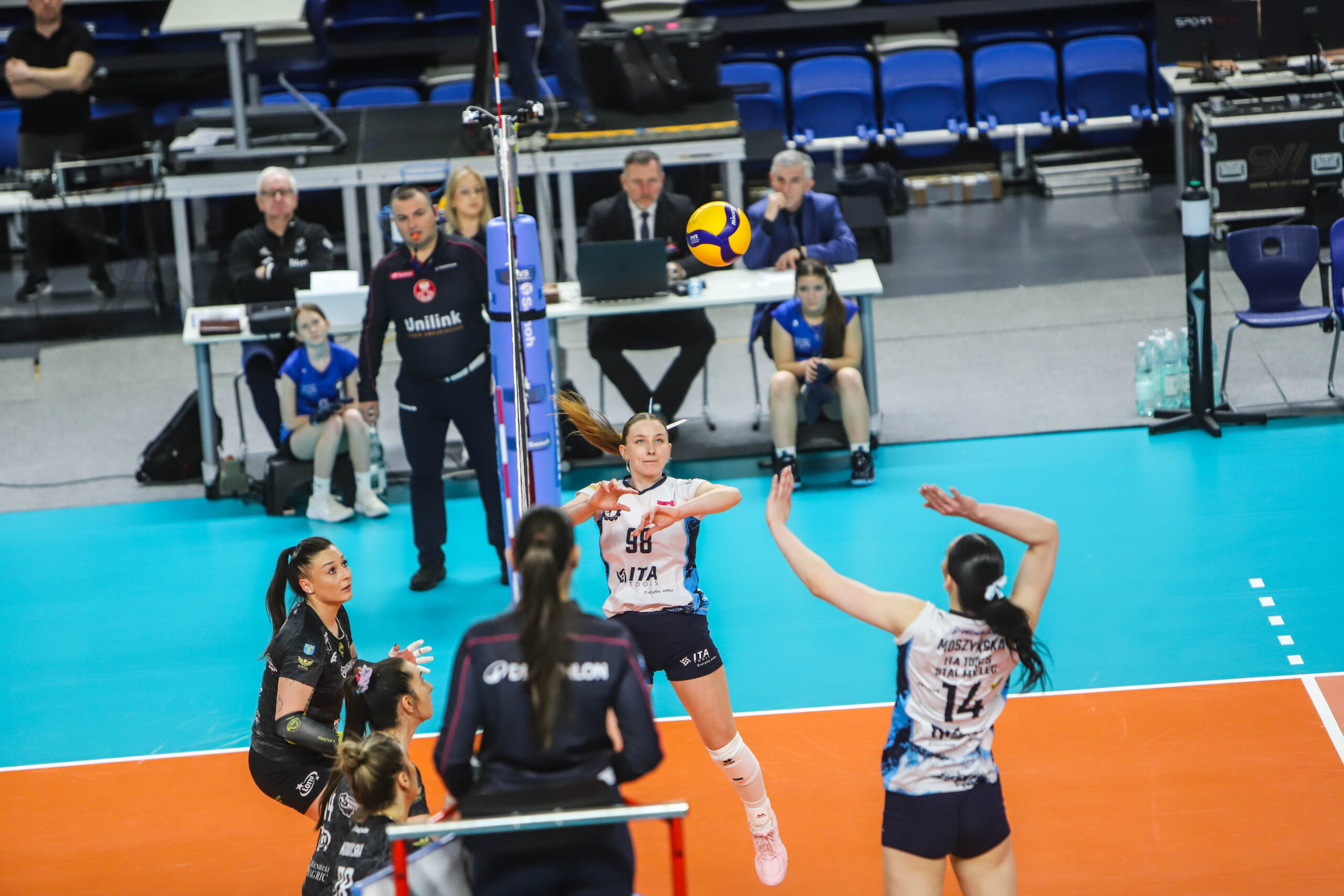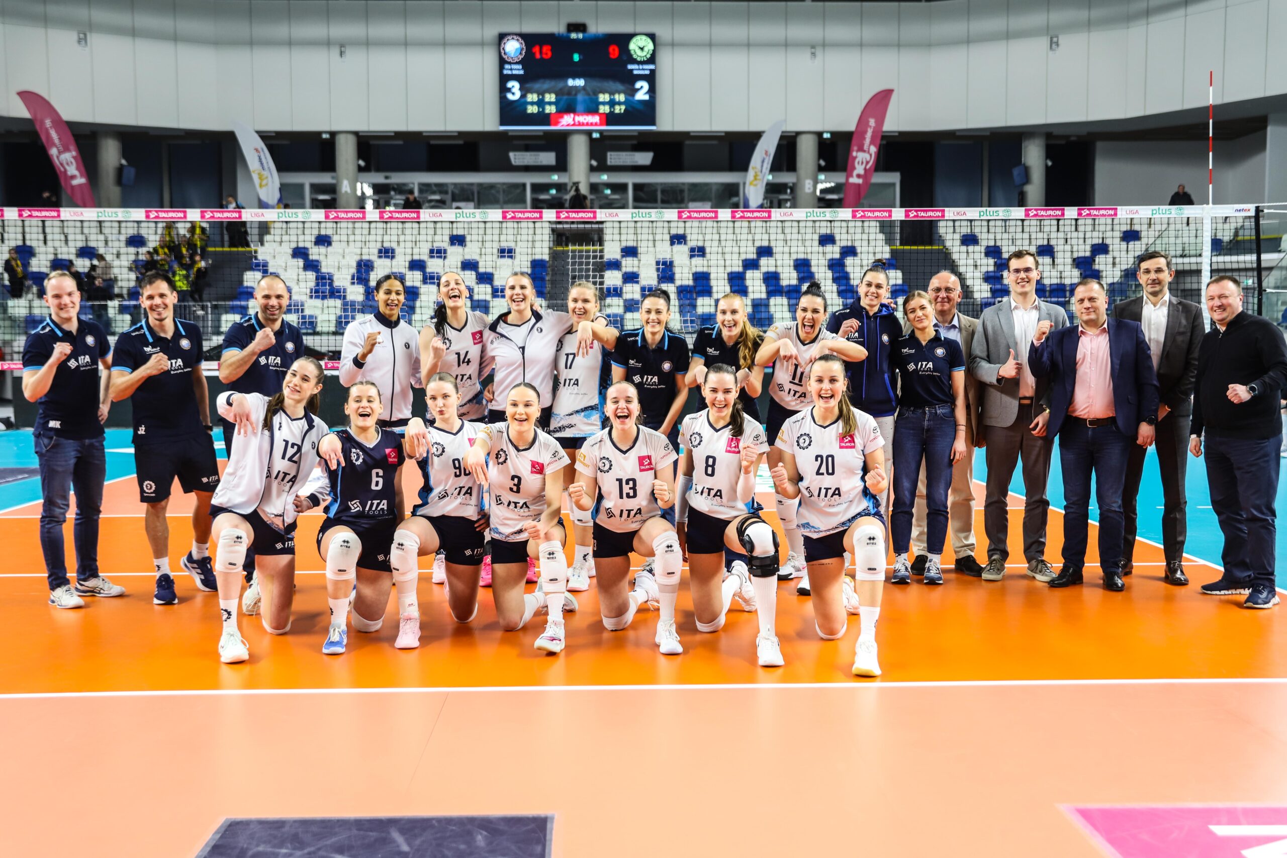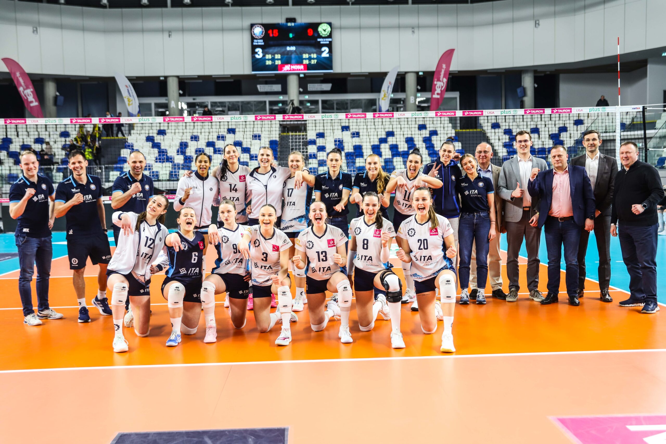 Sokół: Priante (1), Świętoń (9), Tsitsigianni (12), Cygan (11), Brzoska (8), Kowalska (34), Panczewicz (libero) oraz Stronias (3), Wiktoria Nowak, Stachowicz, Cur-Słomka